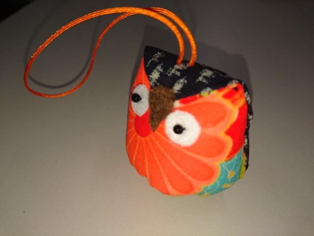 木綿絣とモスリンでフクロウのストラップ、置物